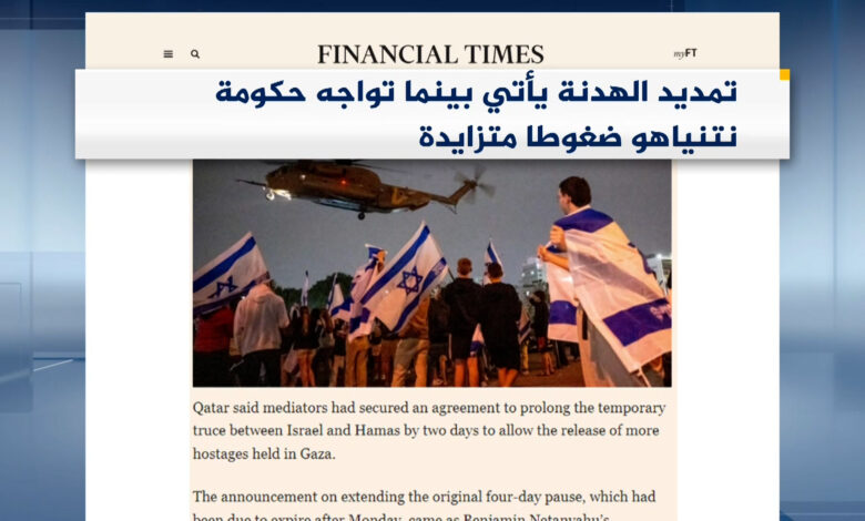 وقالت صحيفة “فايننشال تايمز” البريطانية إن الإعلان عن تمديد الهدنة جاء في وقت تواجه فيه حكومة بنيامين نتنياهو ضغوطا متزايدة “لإتاحة المزيد من الوقت من أجل الإفراج عن الرهائن”.