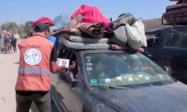 “الفارس الشهم 3” تستقبل النازحين من شرق خانيونس وتقدم لهم مساعدات إنسانية عاجلة