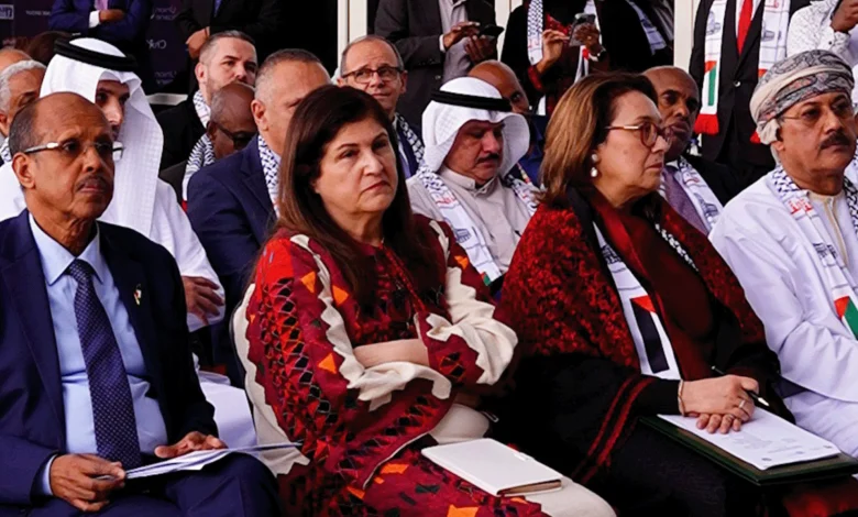 بدوره، ألقى ممثل الجامعة العربية محمد عمر كلمة الأمين العام للجامعة، مؤكدا أن الشعب الفلسطيني واجه أصعب اللحظات بصمود وبطولة، رغم حرب الإبادة التي شنها الاحتلال الإسرائيلي على مدار عامين، والتي استهدفت محو المجتمع الفلسطيني وطمس أي أفق لاستقلاله.