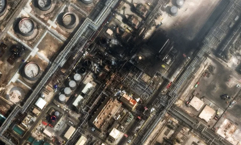 تصاعد الدخان من مصفاة رأس تنورة التابعة لأرامكو بعد ضربة بطائرة مسيرة في ظل التصعيد بالمنطقة (رويترز)