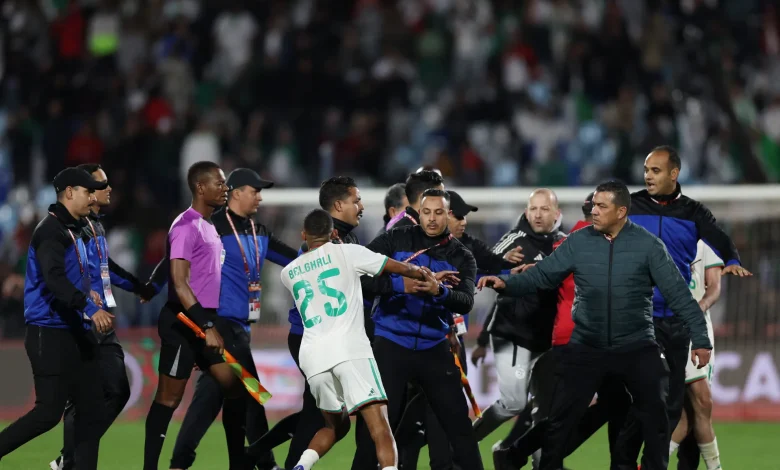 أفاد موقع “أفريكا سوكر” بأن لاعبي المنتخب الجزائري قد احتجوا بشدة على قرارات الحكم عيسى سي وطاقمه، مما أدى إلى محاصرتهم والدخول في مشادات كلامية. وقد تدخلت قوات الأمن في الوقت المناسب لمنع تصاعد الموقف إلى اشتباكات جسدية أوسع.