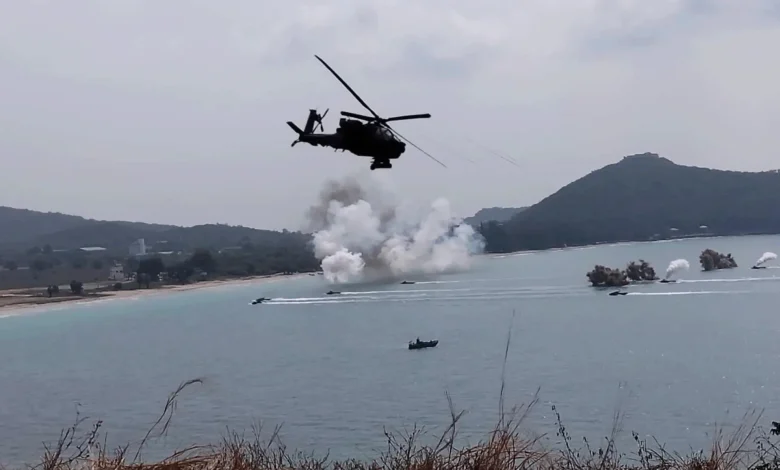 انضمت القوات التايلندية إلى قوات من الولايات المتحدة الأمريكية وكوريا الجنوبية وسنغافورة في تدريبات هجومية برمائية واسعة النطاق الخميس، كجزء من تدريبات “كوبرا الذهبية” العسكرية السنوية لهذا العام، في إقليم “تشون بوري” جنوب العاصمة التايلندية بانكوك.