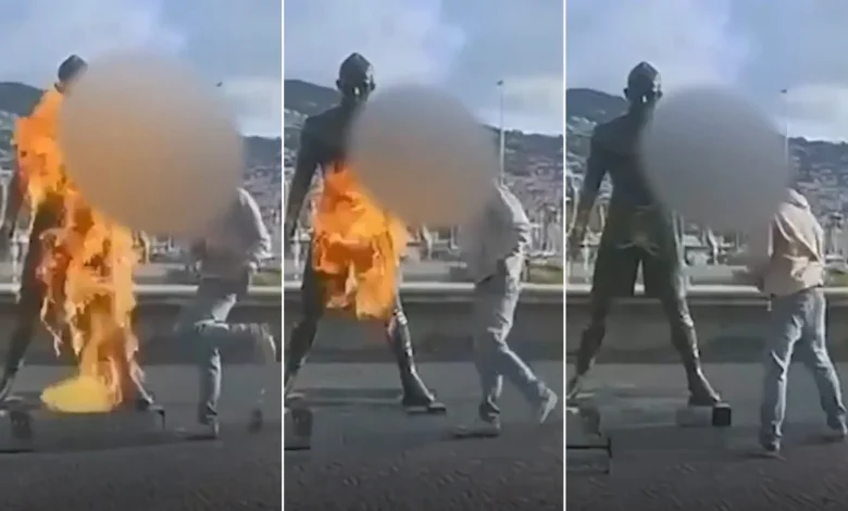بالفيديو .. شاب برتغالي يوثق حرق تمثال رونالدو في ماديرا