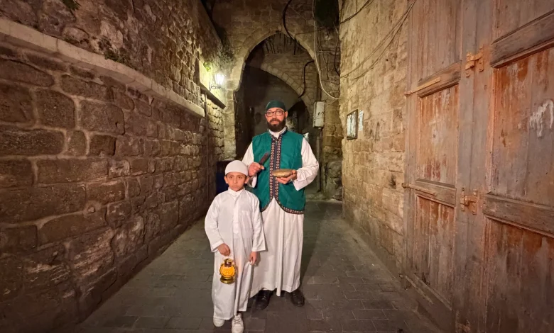 وقبيل أن ينشق الليل عن خيط الفجر، يظهر المسحراتي في الأزقة القديمة. يحمل طبلته الصغيرة، يقرعها بإيقاع ثابت، وينادي بأسماء أبناء الحي: “يا نايم وحد الدايم .. قوموا على سحوركم”، صوته يتردد بين الجدران الحجرية، فيوقظ البيوت بهدوء لا يشبه صخب النهار.