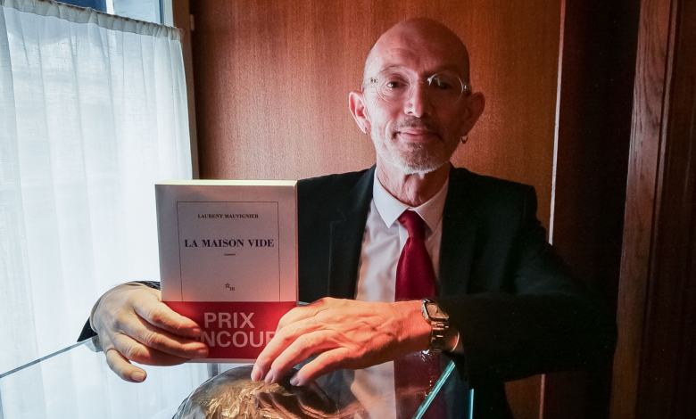 الكاتب الفرنسي لوران موفينييه بعد حصوله على جائزة غونكور الأدبية عن روايته “البيت الفارغ” في مطعم دروانت بباريس في 4 نوفمبر 2025 (الفرنسية)