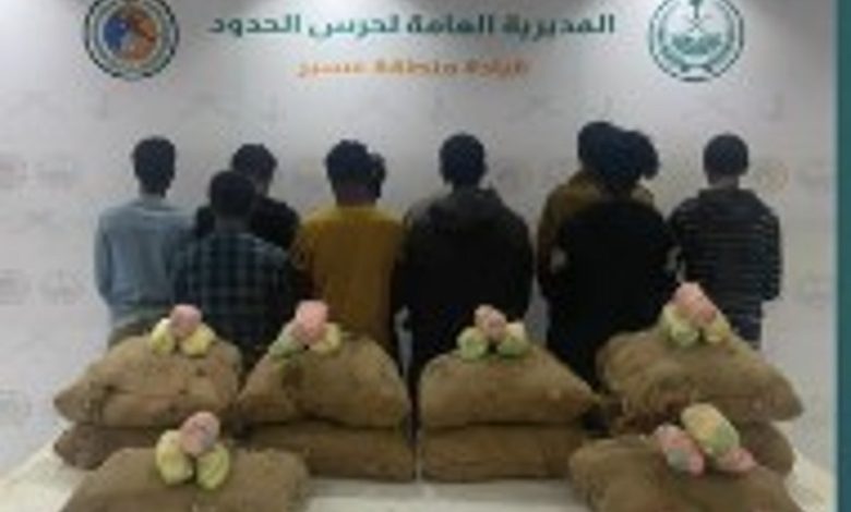 حرس الحدود بعسير يقبض على 10 إثيوبيين لتهريبهم 180 كيلوجرامًا من القات