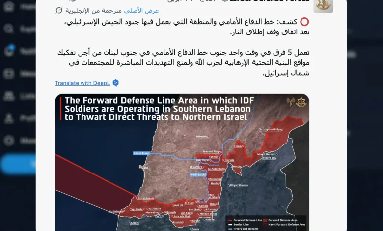 خريطة إسرائيلية تثير الجدل.. “خط الدفاع الأمامي” يمتد إلى الحدود البحرية اللبنانية