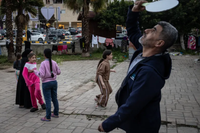 في ساحة المدرسة، تجلس والدة ملحم، أميرة سلامة (41 عاما)، لمساعدة شقيقه الأصغر ذي الأعوام الثمانية، مؤكدة: “التعليم هو الأمر الوحيد المتبقي لأولادي في ظل الحرب”.