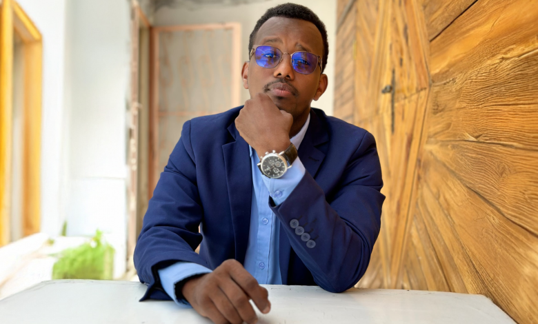 جدي يحمل كتاب “من بدوي إلى رئيس” De bédouin) à président) لمحمد إدريس ديبي إتنو رئيس الفترة الانتقالية لتشاد (الجزيرة)