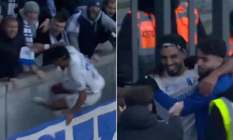 شاهد.. سقوط لاعب في خندق أثناء الاحتفال بهدف