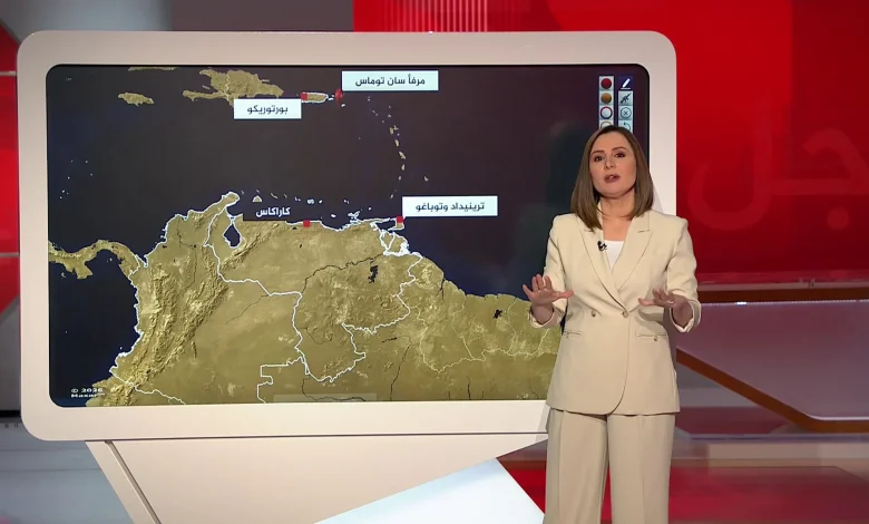 وبحسب الخريطة، بدأت التحركات العسكرية الأمريكية في سبتمبر/أيلول الماضي، وشملت حشداً بحرياً وجوياً غير مسبوق بالقرب من السواحل الفنزويلية. وتضمنت هذه التحركات نشر حاملة طائرات وبوارج مقاتلة، بالإضافة إلى إجراء تدريبات مشتركة مع دول مثل ترينيداد وتوباغو. كما لوحظ نشاط مكثف للطائرات المسيّرة داخل الأجواء الفنزويلية لجمع المعلومات الاستخباراتية.