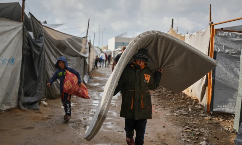 غرق عشرات الخيام بسبب الأمطار وحماس تدعو لإيصال عاجل للمساعدات إلى غزة