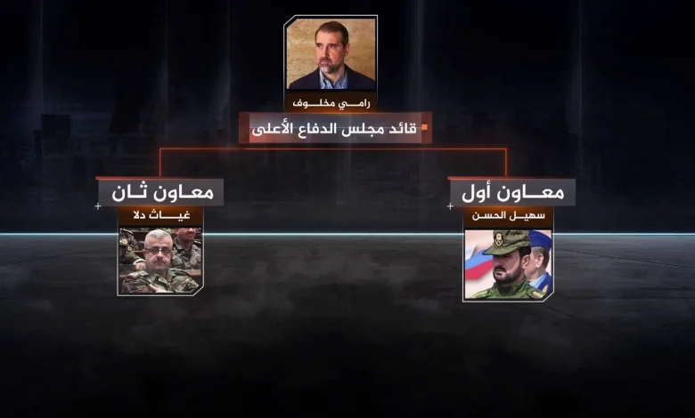 وبحسب الوثائق، يتصدر رجل الأعمال رامي مخلوف، ابن خال الرئيس السوري السابق بشار الأسد، ما يسمى بالمجلس الأعلى للدفاع، وهو ما يؤكد استمرارية نفوذه المالي والسياسي. يليه قائد القوات الخاصة السابق سهيل الحسن، الذي يُعتبر من أبرز القياديين العسكريين، ثم العميد السابق غياث دلا، الذي يتولى الإشراف الميداني المباشر على هذه المجموعات المسلحة. هذه القيادات الثلاث تشكل رأس الهرم في هذا التنظيم الجديد.