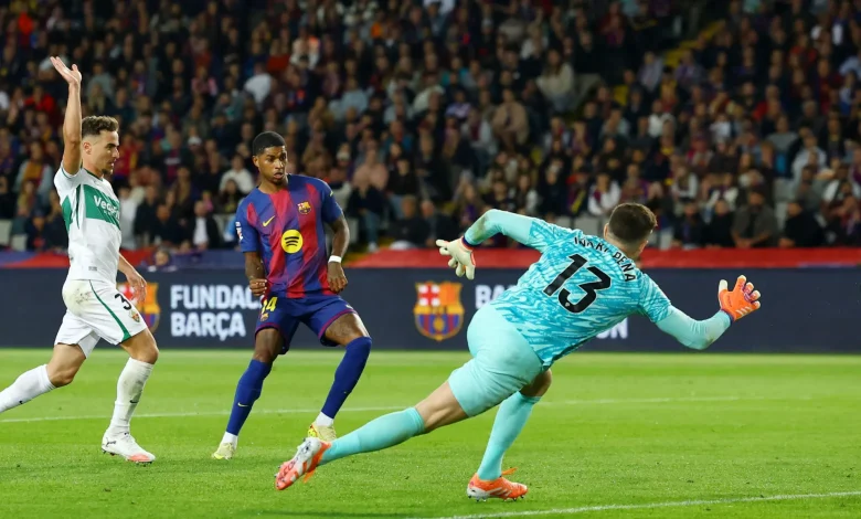 ورافقت “لعنة القائم والعارضة” برشلونة منذ الجولة الأولى في الدوري الإسباني ضد ريال مايوركا، إذ أصاب رافينيا وداني أولمو إطار المرمى مرتين، ورغم ذلك فاز الفريق الكتالوني بثلاثية نظيفة، وهي نتيجة كان بالإمكان أن تزيد إلى 5 لولا الفرصتين.