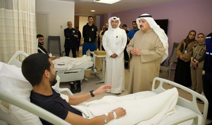 وزير الصحة الكويتي يزور مصابي الطوارئ الطبية إثر سقوط شظايا على أحد مراكز الإسعاف