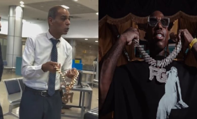 وتداولت مواقع التواصل الاجتماعي فيديو نشره الفنان يظهر 2 من موظفي مطار القاهرة أثناء قيامهما بإجراءات التفتيش الجمركي له وسؤاله بشأن قلادة من الذهب تزن 2 كيلوغرام كانت بحوزته إذا ما كان يملك ما يثبت ملكيته لها، طالبين صورة له وهو يرتديها، مؤكداً أنها من أملاكه الشخصية وهي جزء من مظهره الفني.