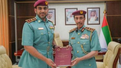 قائد عام شرطة عجمان يهنئ ضابطاً لحصوله على شهادة الدكتوراه في القانون