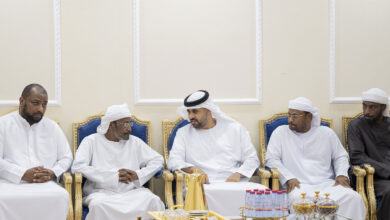 ذياب بن محمد بن زايد يقدم واجب العزاء بوفاة والدة الشهيد إبراهيم غلام سالم البلوشي