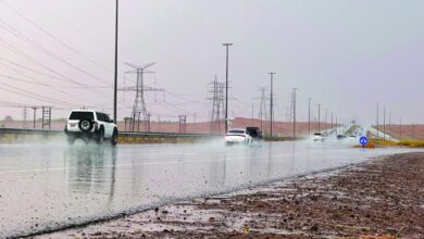 سقوط برد وأمطار مختلفة الشدة على مناطق بالدولة