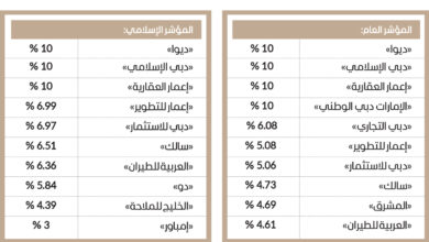 4 شركات تستحوذ على 40 % من وزن مؤشر سوق دبي العام