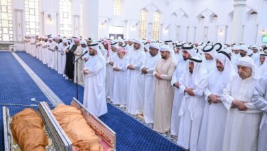 ولي عهد عجمان يؤدي صلاة الجنازة على جثماني ربيع بن ياقوت وجاسم الحوسني