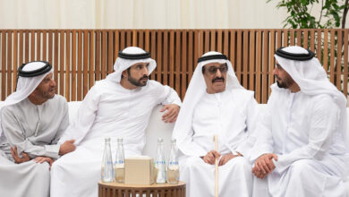 حمدان بن محمد والشيوخ والمواطنون يعزون في وفاة هزاع بن سلطان بن زايد