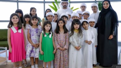 حمدان بن محمد يلتقي مجموعة من الأطفال المواطنين شاركوا في تنظيف فرجان دبي عقب الحالة الجوية الاستثنائية