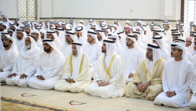 حمدان بن زايد يؤدي صلاة العيد في مسجد قصر مزيرعة ويستقبل المهنئين