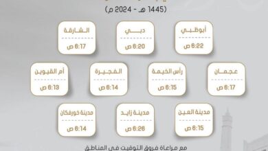أعلنت الهيئة العامة للشؤون الإسلامية والأوقاف، مواقيت صلاة عيد الفطر السعيد في إمارات الدولة 1445 هـ – 2024 م . ونشرت…