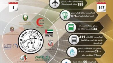 «الفارس الشهم 3» تواصل إغاثة الشعب الفلسطيني في غزة بـ 199 طائرة لليوم الـ 147