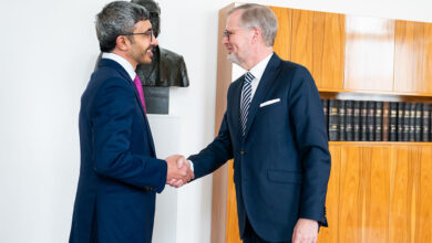 عبدالله بن زايد يلتقي رئيس وزراء التشيك في براغ