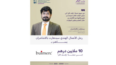 أعلن رجل الأعمال الهندي، ورئيس مجلس الإدارة والرئيس التنفيذي لشركة Buimerc سيدهارت بالاشاندران، عن مساهمته بمبلغ 10 ملايين درهم لدعم…