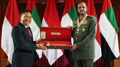 منح معالي برابوو سوبياتو وزير الدفاع الإندونيسي، سعادة اللواء الركن صالح محمد بن مجرن العامري قائد العمليات المشتركة، وسام “دارما…